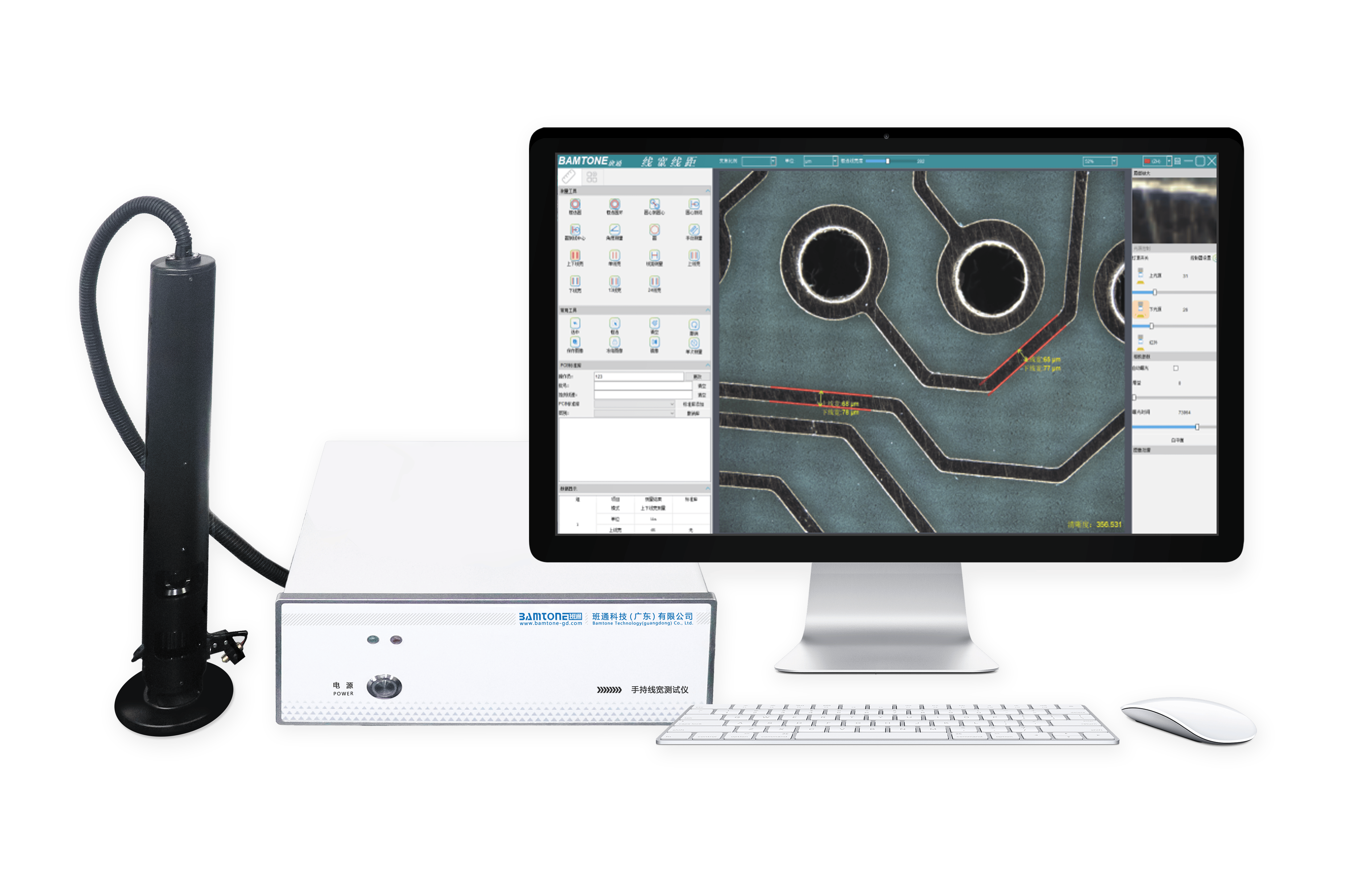 手持线宽线距测试仪Bamtone D300系列是一款通过高感光度彩色 CCD 相机、光学放大系统和图像处理软件来测量 PCB 线路几何尺寸的光学测量仪器。主要用来在生产现场、实验室等场合快速测量 PCB 等精细线路的线宽和线距,帮助控制工艺、提升良率。可实现“快速+非接触+高精度”测量,能替代放大镜+卡尺这类纯人工方法。