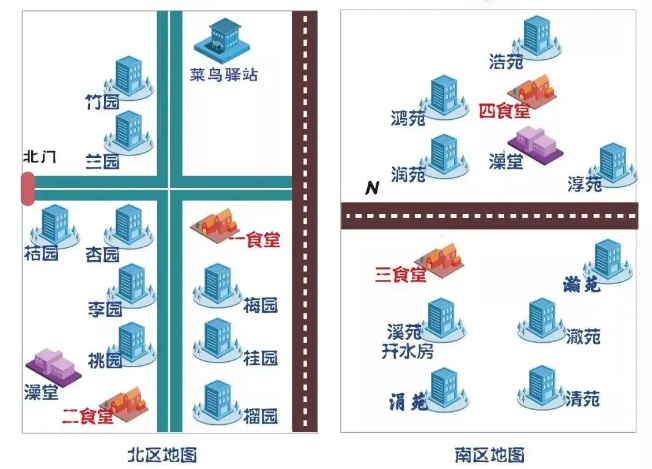 同时,江南大学蠡湖校区的校内建筑分布规划的也十分合理,特别是生活区堪称:”黄金配比“。宿舍楼群以"苑"为名,浩苑、竹园、鸿苑等组团式分布在北区与南区,每个组团步行5分钟内必达食堂或公共浴室。四食堂与二、三食堂形成三角辐射,无论住在清苑还是梅园,下课铃响后10分钟就能吃上热乎饭。
