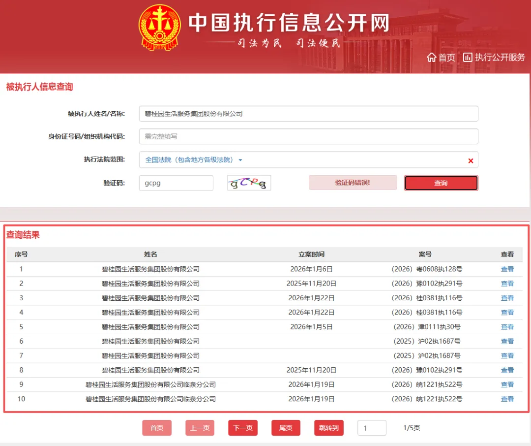 中国执行信息公开网显示,截至2026年1月26日,碧桂园生活服务集团累计已有23条被执行人记录。其中,金额最高的一笔执行案于2025年8月19日立案,上海市第二中级人民法院将碧桂园生活服务集团列为被执行人,案号为(2025)沪02执1687号,被执行金额5.23亿元。