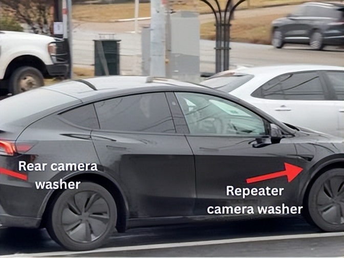 据汽车媒体notateslaapp近日曝光的图片和视频显示,在美国奥斯汀路测的Model Y Robotaxi车队,早已超越此前仅在后视摄像头配备清洗装置的配置,将主动清洁机制覆盖至所有外部摄像头。要知道,侧视重复转向灯摄像头(side repeater fender camera)作为消除行车盲点、辅助变道转弯的核心传感器,B柱摄像头则承担着侧方环境感知的重要职责,这些摄像头的视野清晰度,直接决定了自动驾驶系统的决策准确性。
