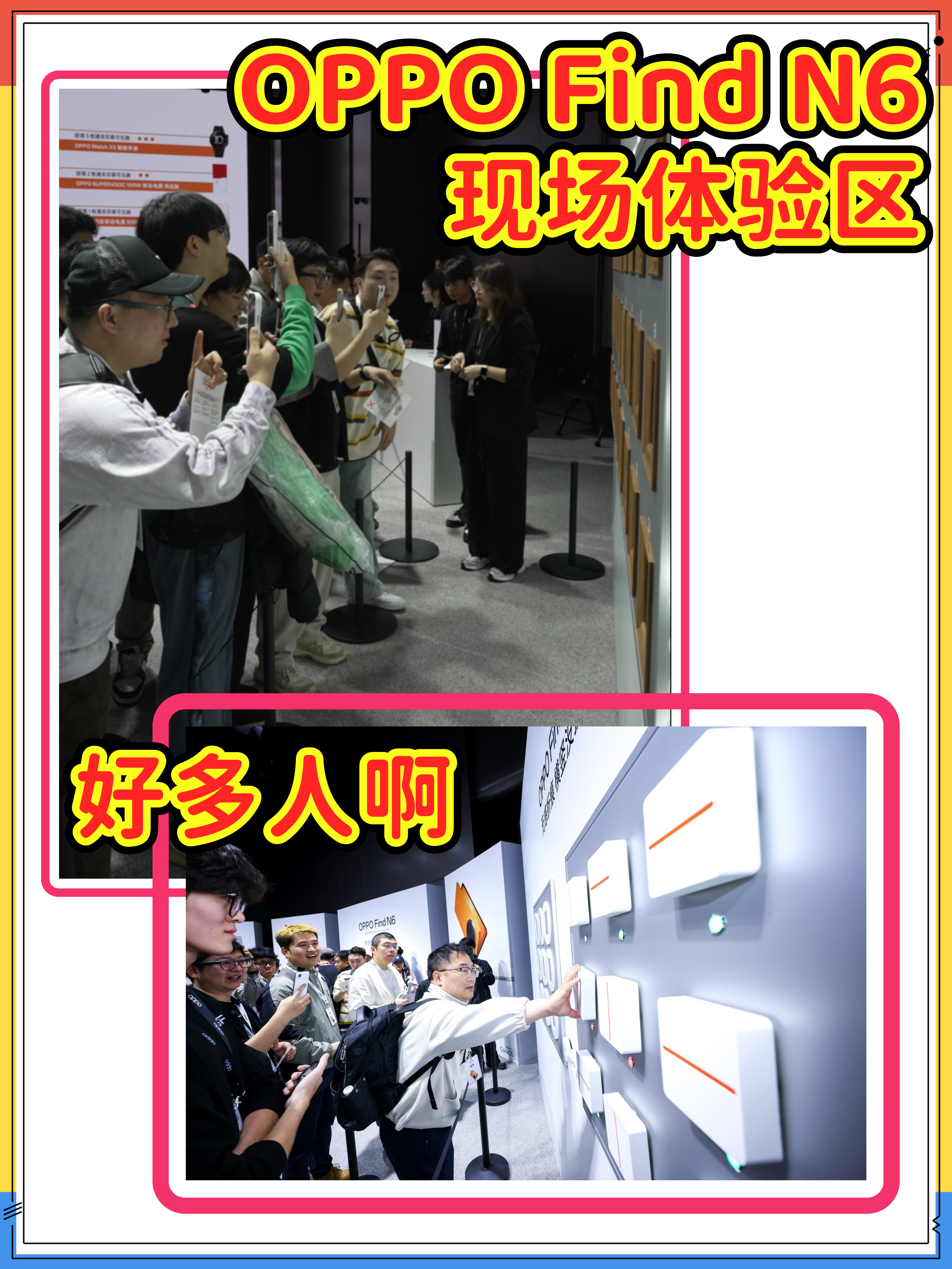 这回OPPO Find N6的体验区人超多,果然看完了交流会都想上手摸一摸了吧!毕竟“新一代天穹钛合金铰链”+“天穹记忆玻璃”打造的无感折痕,连苹果都抵抗不住了~