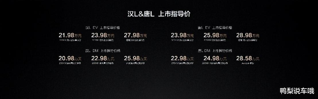4月9日,比亚迪划时代旗舰汉L唐L正式上市,“汉唐旗舰震撼来袭”,带来全新出行体验。新车共推汉L EV、汉L DM、唐L EV、唐L DM四大车系,各有6大配置版本,售价20.98万 - 28.98万元。截至6月30日,购车还可享至高1.5万元首销期置换补贴。