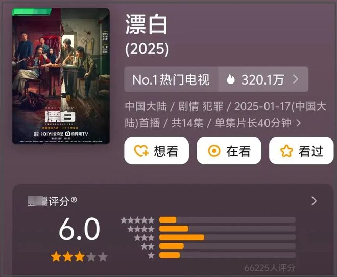 近期,一部名为《漂白》的电视剧在影视市场中掀起了波澜。该剧自开播以来,凭借其紧张刺激的剧情和强大的演员阵容,迅速吸引了观众的目光,播放热度一路飙升,成功登顶各大平台的热门剧集榜单。观众们起初被剧中紧凑的节奏、悬疑的氛围以及演员们精湛的演技所吸引,对其寄予厚望,本以为它会成为一部口碑与热度双赢的佳作。