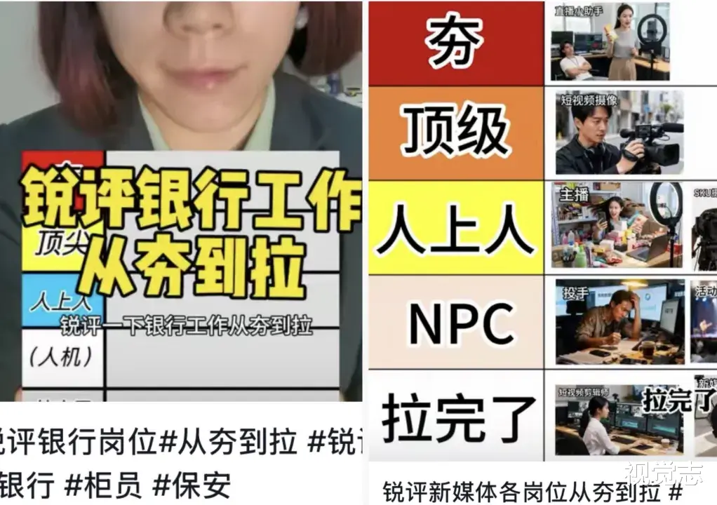 小视发现,不管是银行还是新媒体,广告人还是金融领域,“夯”都是相似的,事少、不背锅、工作环境能让人自然情绪稳定;“拉”则各有各的拉法,基本就是健康没了、心态崩了、糟心事儿一大堆,钱更是没赚多少。