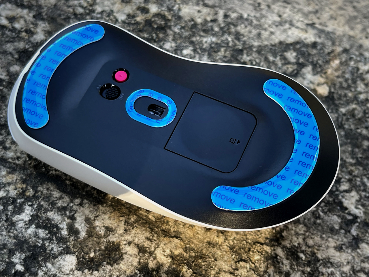 鼠标腹部有一块磁吸盖板。