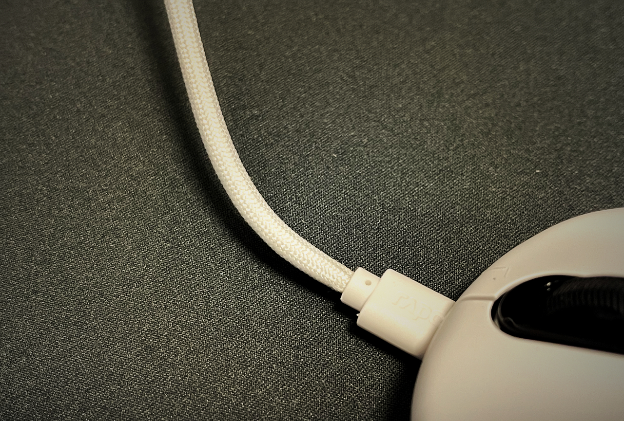 雷柏VT3PRO MAX配的充电线,也非常有讲究,乃轻柔伞绳镀金接口数据线,线体柔软,即便连着线使用,也无束缚感,镀金接口传输稳定,保证了有线连接的8K高速率。