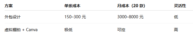 👉 虚拟棚拍这种新方式,真的能省钱吗?本文将从真实成本出发,对比「外包设计」与「虚拟棚拍」两种作图方案,帮你找到更适合电商卖家的省钱解法。