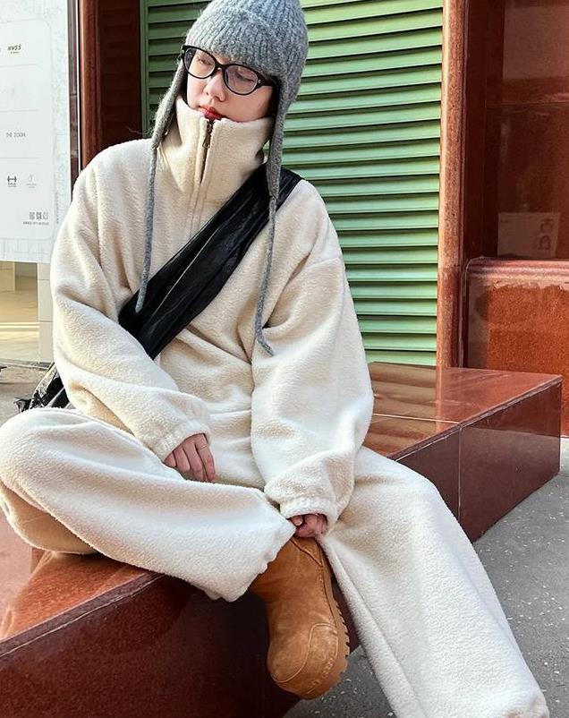 在寒风瑟瑟的冬日,你是否在寻觅一套既保暖又时尚的穿搭?这款半拉链羊羔毛套装,将是你冬季衣橱的绝佳选择。