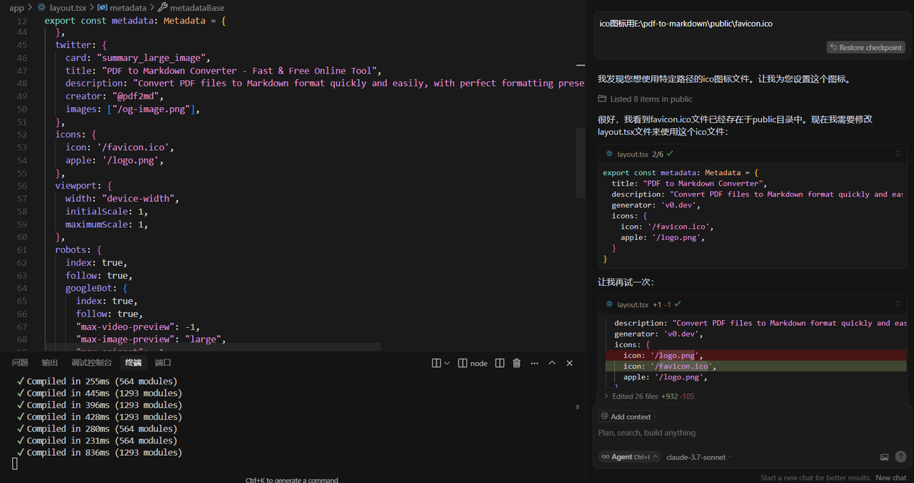 PDF2MD 五个小问题都已经用Cursou解决了,预上线也算是告一段落,下期我们将开始增加广告场景和付费场景,感兴趣的可以一起学习哦~