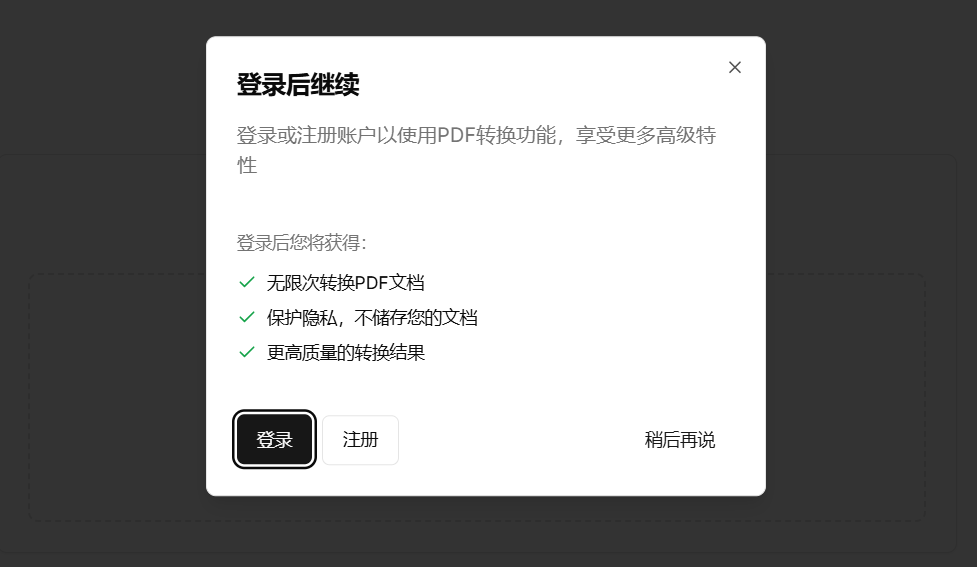 我们也要优化登录弹窗的提示词,让用户有登录的想法,比如可以无限次转换PDF文档等。