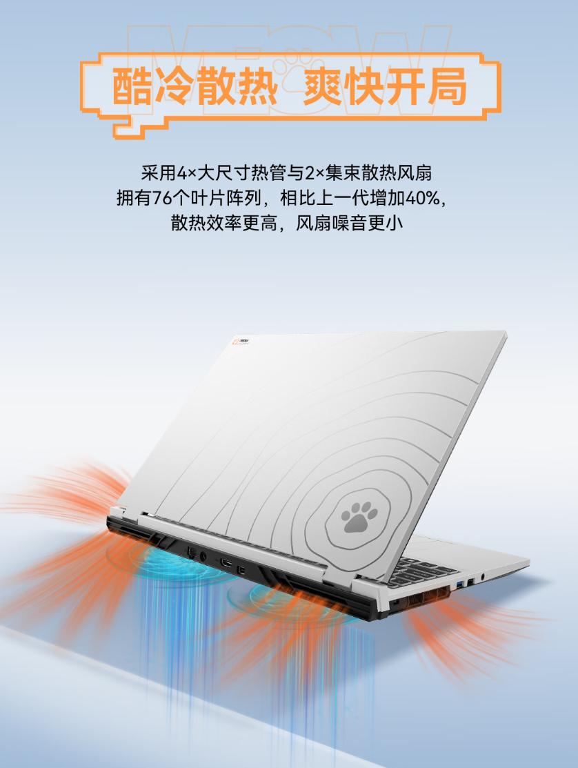 玩游戏最怕的就是游戏本发热导致卡顿或者自动关机。七彩虹COLORFIRE MEOW R16游戏本采用了全新“酷冷”散热系统,双风扇+四热管+四出风设计。这样的散热系统可以有效地将热量散发出去,让你在长时间玩游戏时,也能保持游戏本的稳定运行。而且,内置的影院级双扬声器,能提供沉浸式的影音体验。无论是玩游戏还是看电影,都能让你身临其境,仿佛置身于游戏世界或电影场景之中。