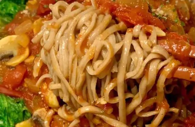 2. 荞麦面煮至八分熟即可,后续翻炒时会进一步吸收茄汁的味道,口感更佳。