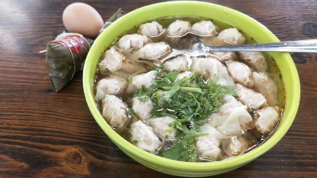 汤底调制:在碗中放入适量盐、生抽、香醋、鸡精、白胡椒粉,加入一勺独家料油,再舀入适量煮馄饨的热汤,搅拌均匀。将煮好的馄饨捞入碗中,撒上葱花、香菜,一碗美味的千里香馄饨就完成了。这款馄饨凭借独特馅料与香浓料油,鲜香可口,令人欲罢不能。