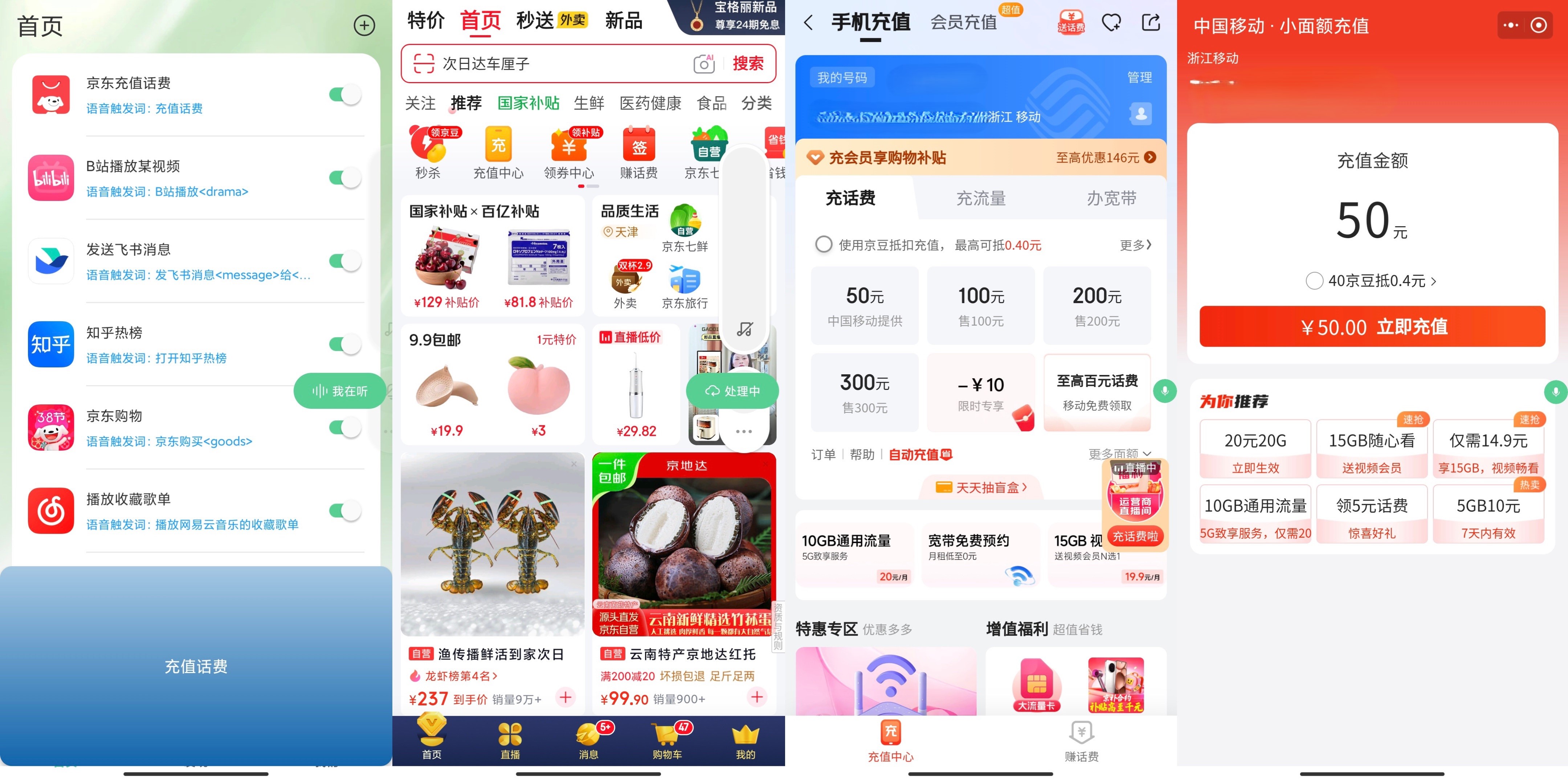 还有,“充值话费”对煎饺App来说更是手到擒来,设置好常用手机号,更是全自动化一句话搞定话费充值!