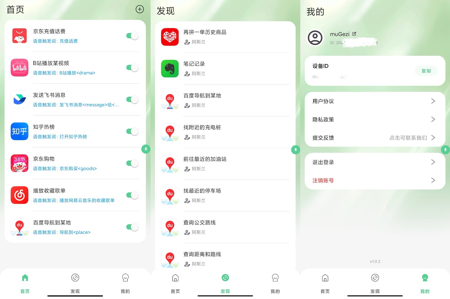 首页就是我们可以使用的快捷指令,也是煎饺App实现“说啥干啥、指哪打哪”的基础,首页的指令我们可以通过“发现”页直接克隆别人现有的,也可以自己根据需求去自行设置,DIY达到私人订制般的享受。