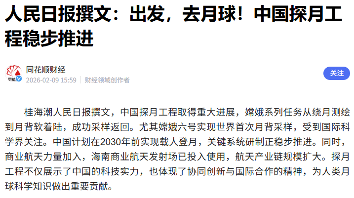 人民日报撰文:出发去月球!