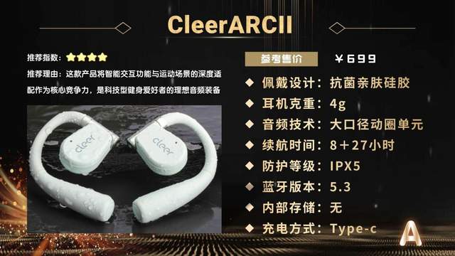 CleerARCII以智能交互与运动场景深度适配为核心竞争力,凭借科技感配置与成熟听音表现,成为科技型健身爱好者的理想选择。