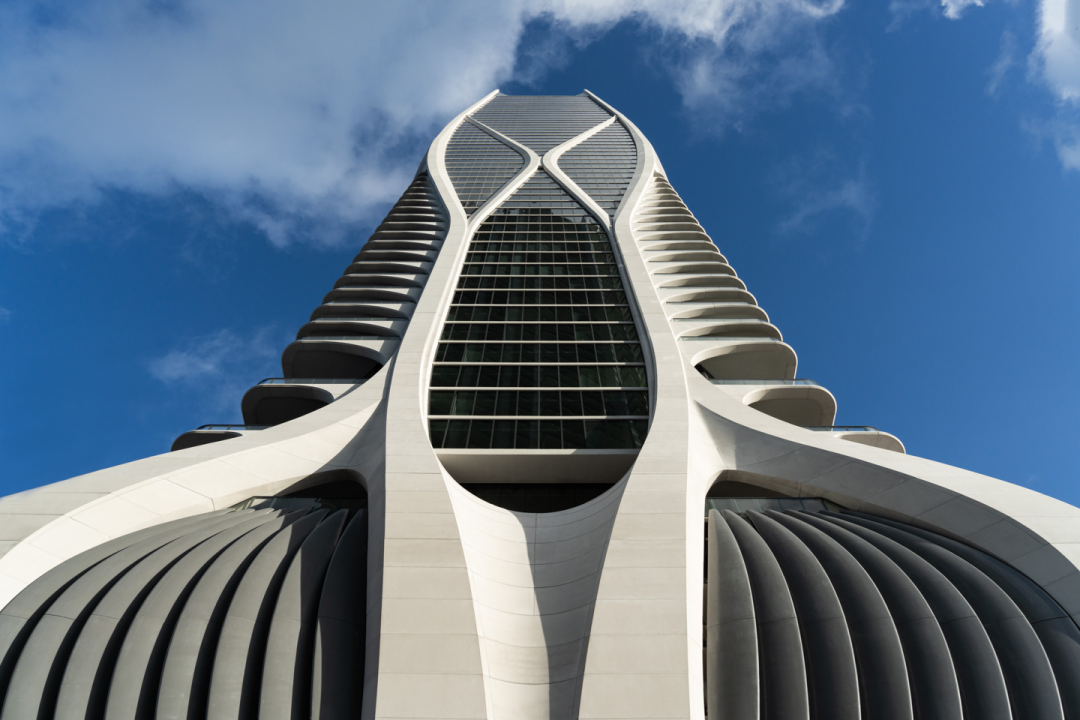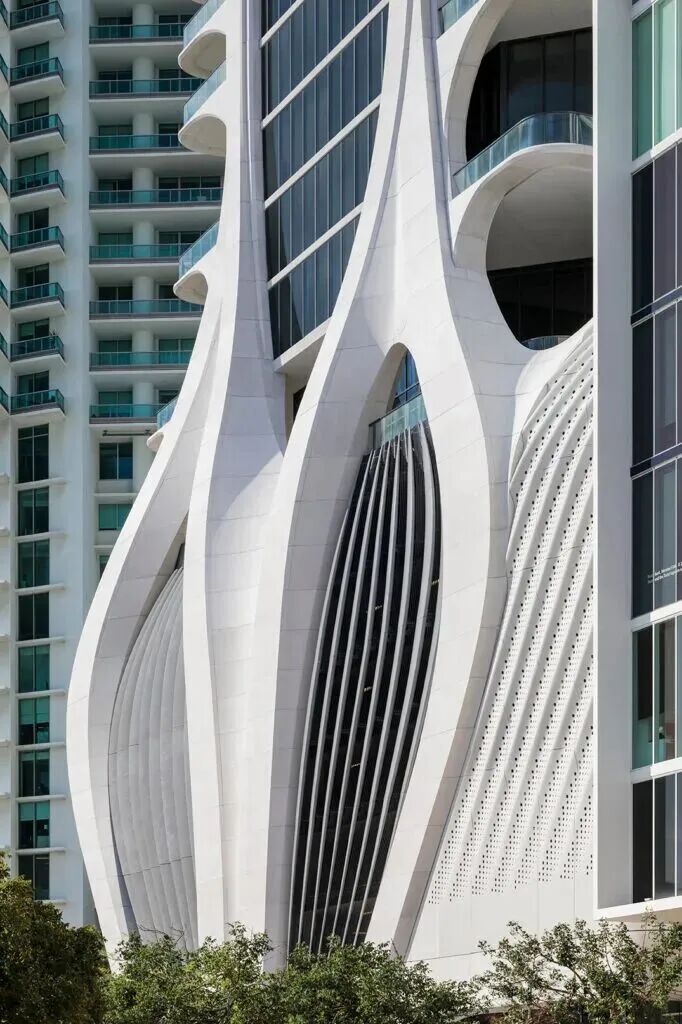 这座高216米、共62层的超高层住宅,包含豪华公寓及顶层复式空中别墅,建筑面积约8.4万平方米。它是建筑大师扎哈·哈迪德过世前设计完成的最大的住宅设计项目,为迈阿密定义了高端居住范式。