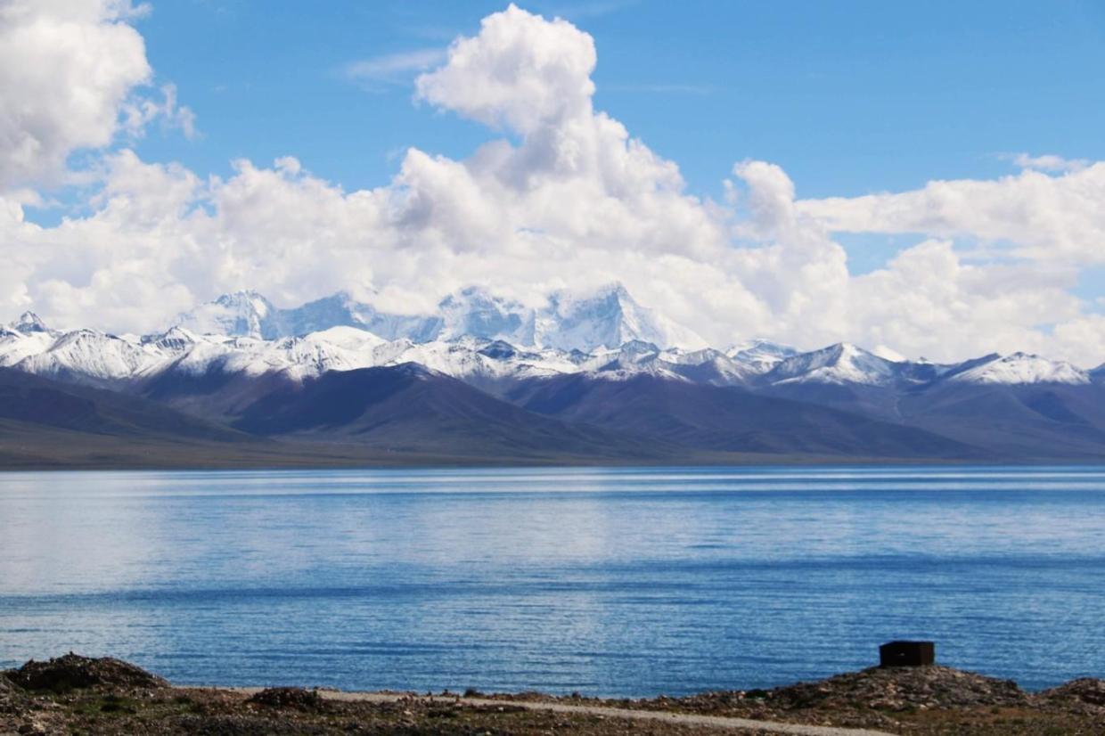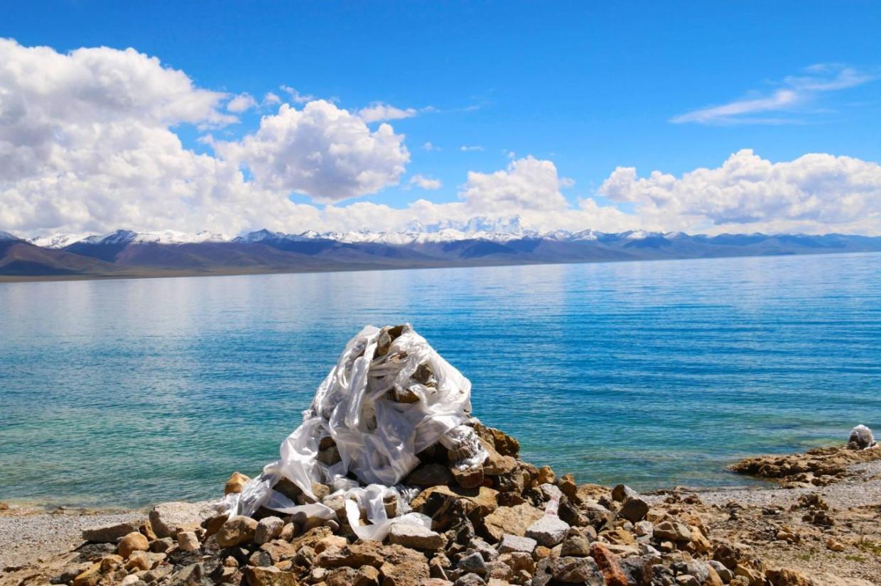 纳木措湖位于念青唐古拉山脉的腹地,周边远远的雪山便是念青唐古拉的神山,裹上白色哈达的玛尼堆遥望圣洁雪山,多少人的信仰就深