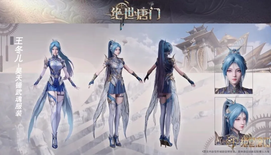 衣服的颜色整体以蓝色为主,两边搭配了轻纱的蝶翼装饰。仔细看冬儿昊天锤战服的脸,终于有唐三和小舞的影子了。要是早在二赛就换这套造型,大家也不会那么生气。