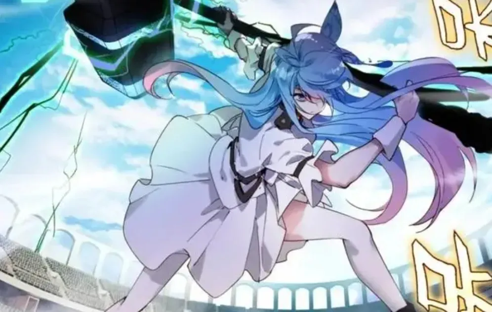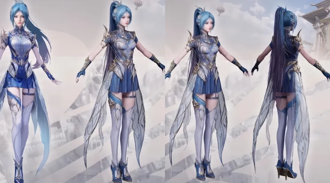 从官方发出的原画图看,这才是女主真正有的造型待遇。白色的袜子衬托修长的美腿,一条腿上搭配了耳环。粉丝心心念念的粉蓝色高马尾终于来了。