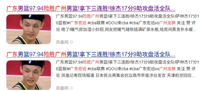 刚刚结束的CBA常规赛第三轮广东德比之战中。