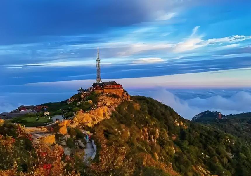 山城相依,山城一体,人们争相为一座山,奔赴一座城。“岱顶迎朝晖,金光漫乾坤”,待夜幕还未完全褪去,便借着微弱的星光来到了泰山景区的南天门前。这座巍峨的朱红色建筑在夜色中显得格外庄重,此时,已有不少人聚集于此低声交谈,话语里满是对即将到来的朝霞的憧憬。当穿过南天门,徒步攀登约六百级台阶,便来到观赏朝霞的绝佳之地——玉皇顶。玉皇顶四周围以石栏,这里是泰山之巅。石上有南阳王均于一九二一年题写的“极顶”二字。其西北侧,矗立着“古登封台”碑,古代君王登山祭天,就在此处设坛。且玉皇顶傲立峰巅,俯瞰群山,颇有“一览众山小”的豪迈之感。