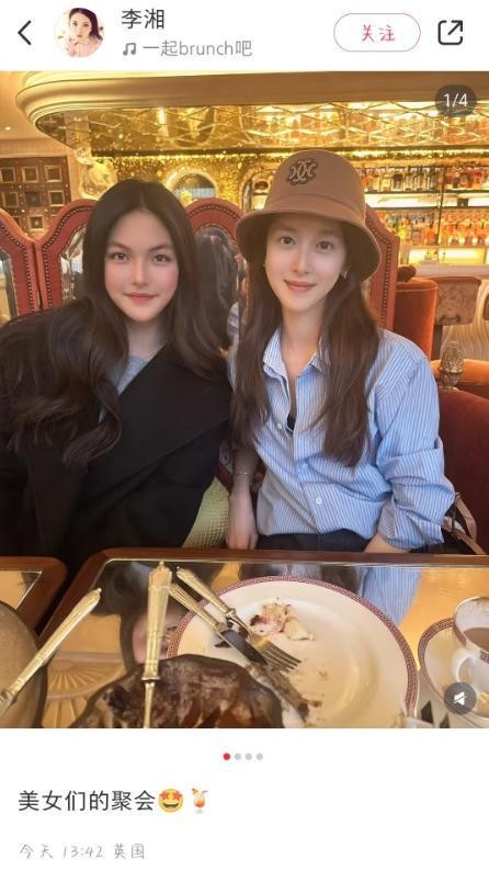 李湘发布动态并配文这是美女们的聚会,王诗龄和一旁的美女一起合照留念。