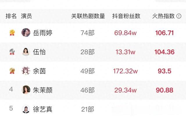 徐艺真排第五,前段时间因为上了综艺节目5哈,热度一路走高,又重回了热度榜前五。