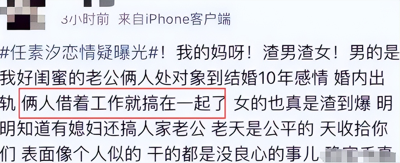 看着妻子的控诉,网友们开始深挖任素汐的婚姻状况,这一挖不得了,原来她自己也是有夫之妇。