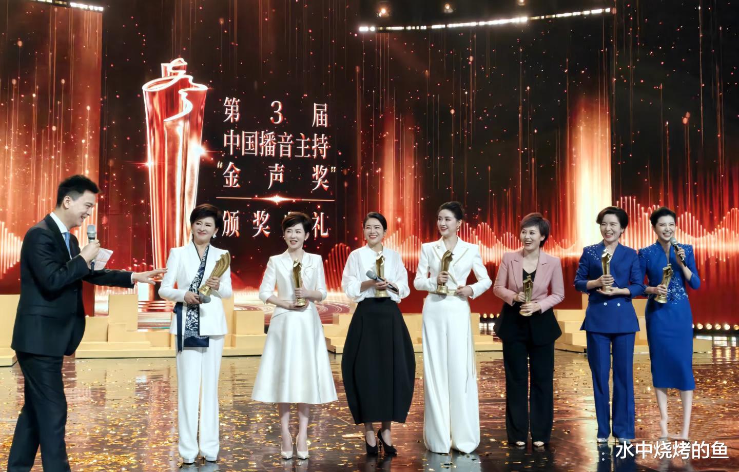 今年的金声奖又有20位主持人获奖,其中有尼格买提、邹韵、陈辰等在内的10位电视播音员主持人,也有延大、王强、方亮等在内的10位广播播音员主持人。