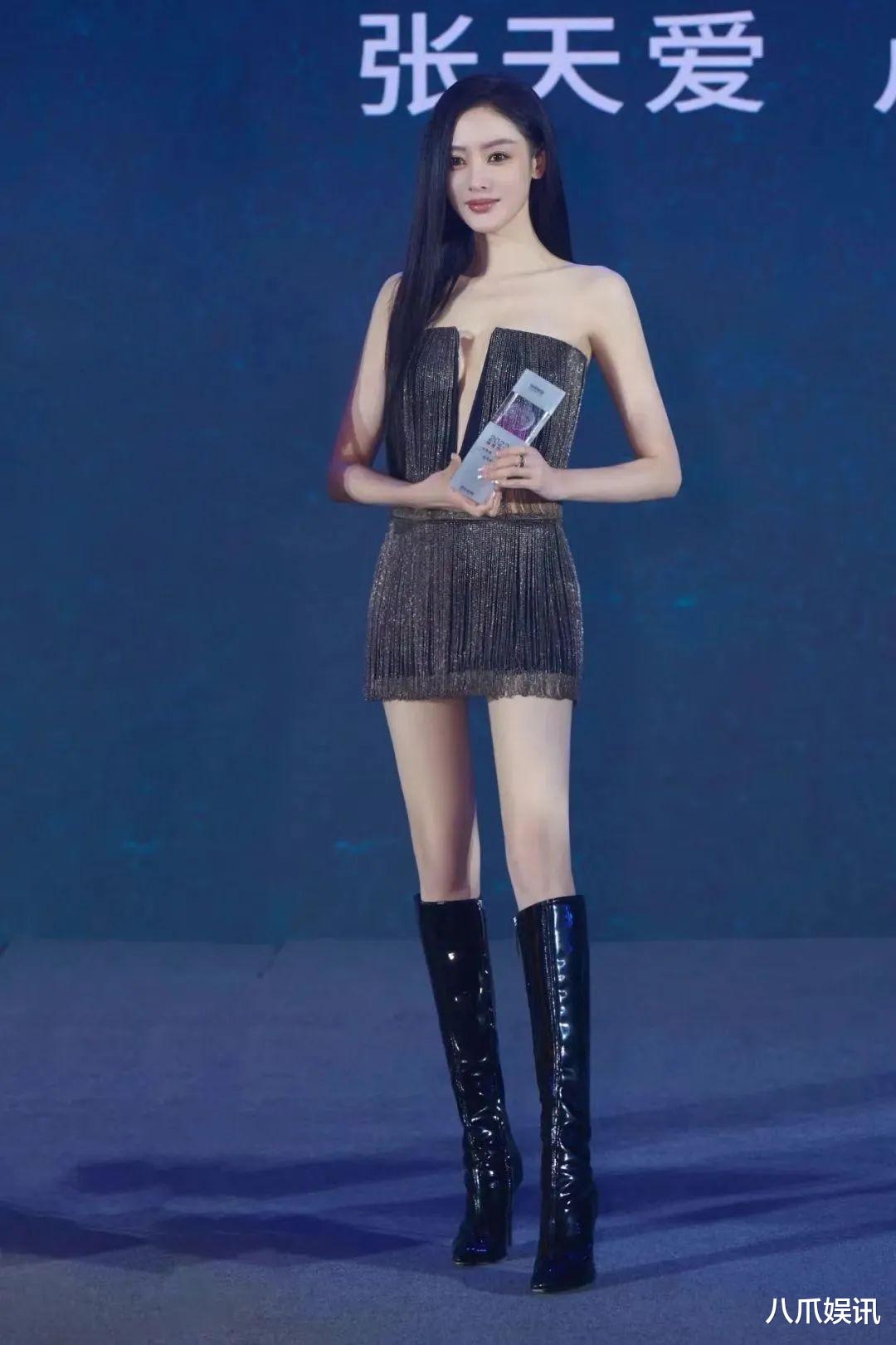张天爱一袭暗金色深V抹胸超短连衣裙,真空上阵,大秀绝美身材,酥胸半露,丰满有料,性感撩人,真是老天爷赏饭吃!巴掌脸蛋白到反光,高鼻梁+卧蚕笑起来能掐出水。别人PS都P不出这皮肤状态,活生生的发光体啊!