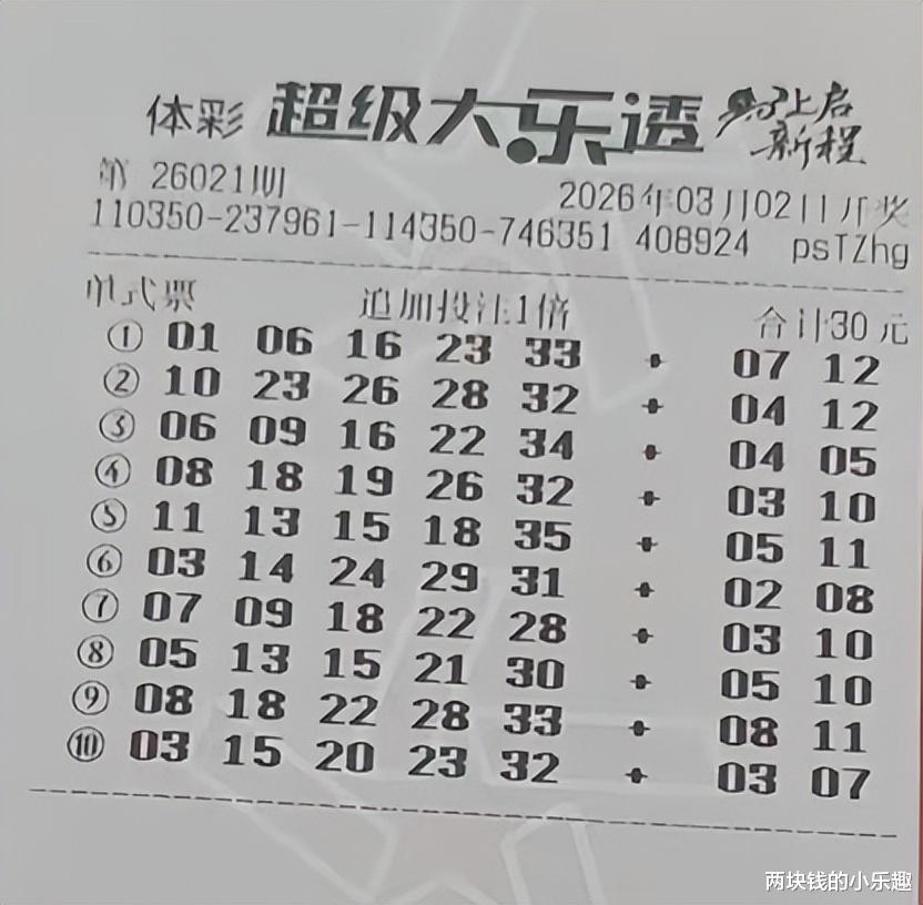 大家好,下面给大家带来的是大乐透第26021期的赏析,本期下午场为大家整理了精彩的复式汇总,领衔出场的不再是顶流的1.2万大复式,而是换成了13+3的7722复式,不过本期是两张相同票面一同亮相,另有5544和4004等多张复式也亮相了,下面请大家开始欣赏: