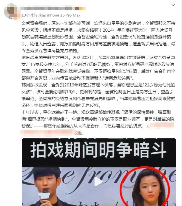 2013年《来自星星的你》剧组里,全智贤踩着十厘米高跟鞋站在增高箱上的画面,像极了韩国娱乐圈的隐喻——那些看似光鲜的完美人设,不过是资本精心搭建的空中楼阁。当金秀贤的完美面具在十年后碎裂,我们看到的不仅是顶流的坠落,更是一个行业系统性溃烂的切片样本。