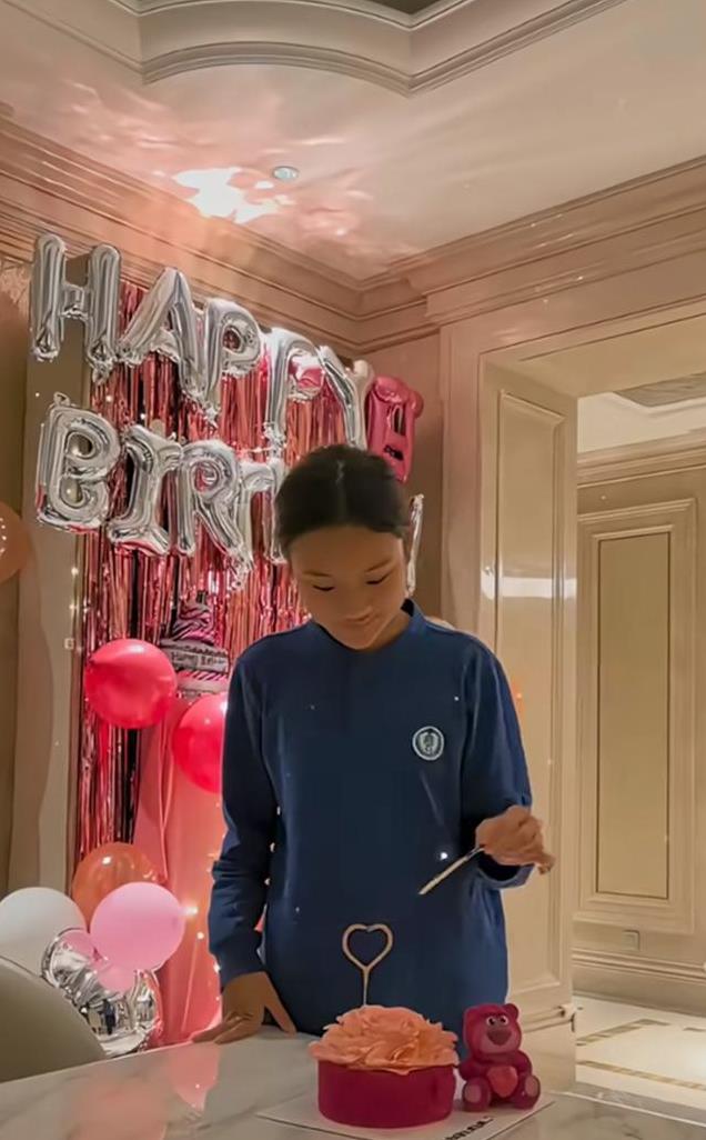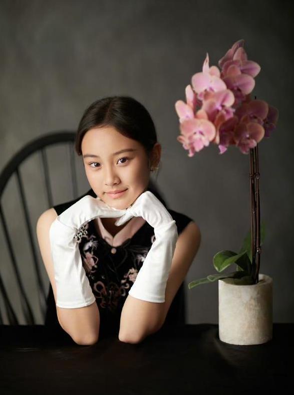 在晒出的视频里,在家跟家人过生日的甜馨,扎着个马尾,穿着蓝色上衣。甜馨肤色有点黑,不过脸型和五官挺漂亮。12 岁的她身材修长,从小就学舞蹈和钢琴,不管是体态还是气质都特别好,在星二代里算是越长越好看的了。