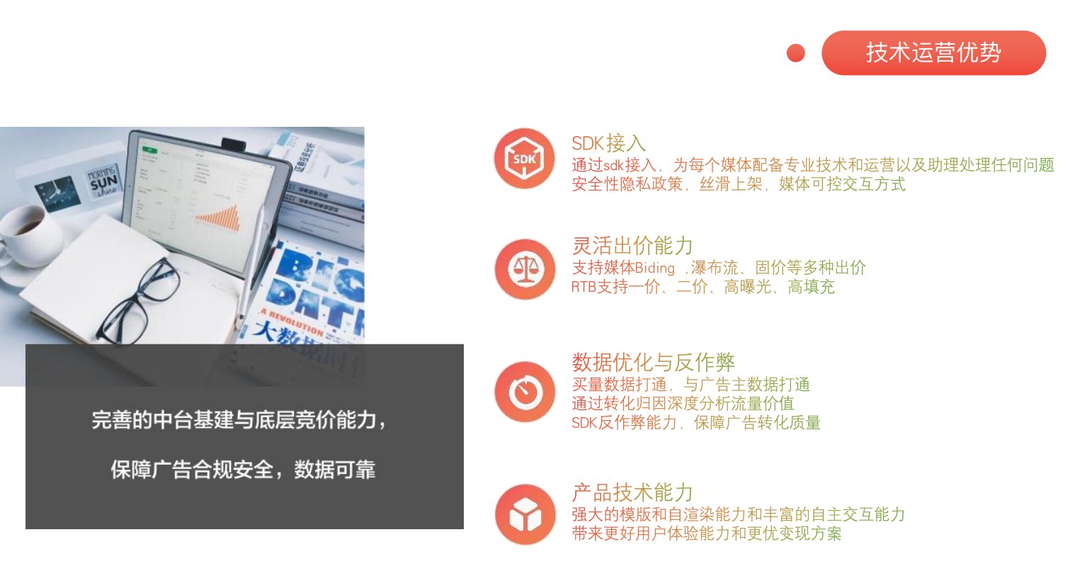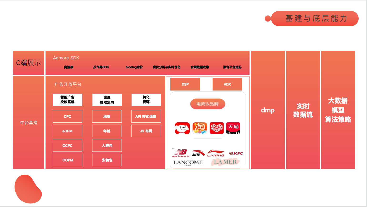 ·Admore SDK:提供轻量化接入能力,支持原生、weexrn、flutter 等多框架开发,配备反作弊功能、数据合规工具及自渲染模板,确保广告安全合规且适配多样化场景。