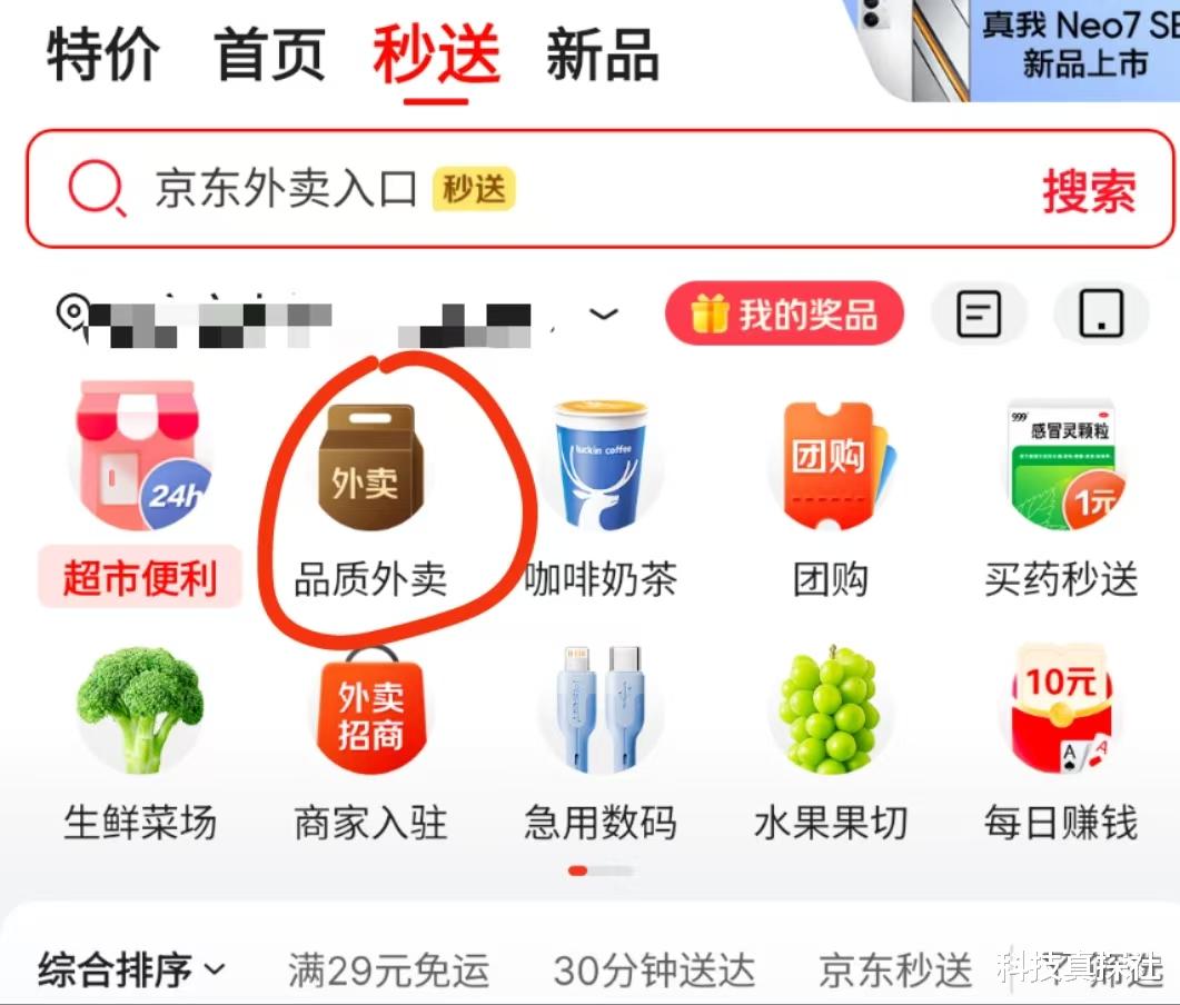 京东外卖的入口在京东APP内的“秒送”频道,与其他即时零售业务(如生鲜、药品配送)同在一个模块,由此可见京东是将外卖业务视为即时零售生态的「高频流量入口」,激活整个即时零售业务的协同发展。