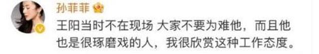 孙菲菲也是十分仗义的站出来发言说王阳是一个很好的人,在剧组中也是工作十分认真,希望大家不要为难他。
