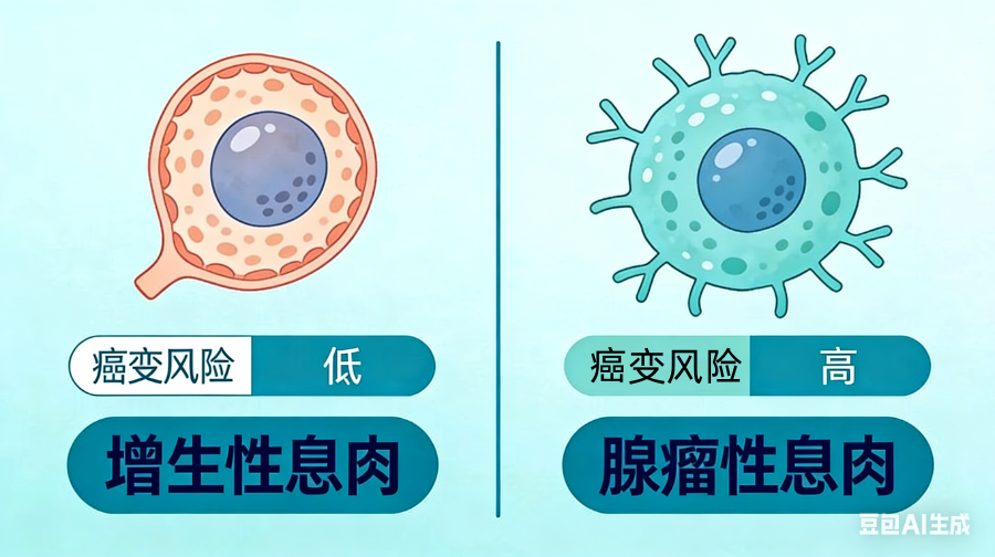 问:体检报告上写着肠息肉,是不是离癌症不远了?别慌,并非所有息肉都会癌变。肠息肉主要分为两大类: