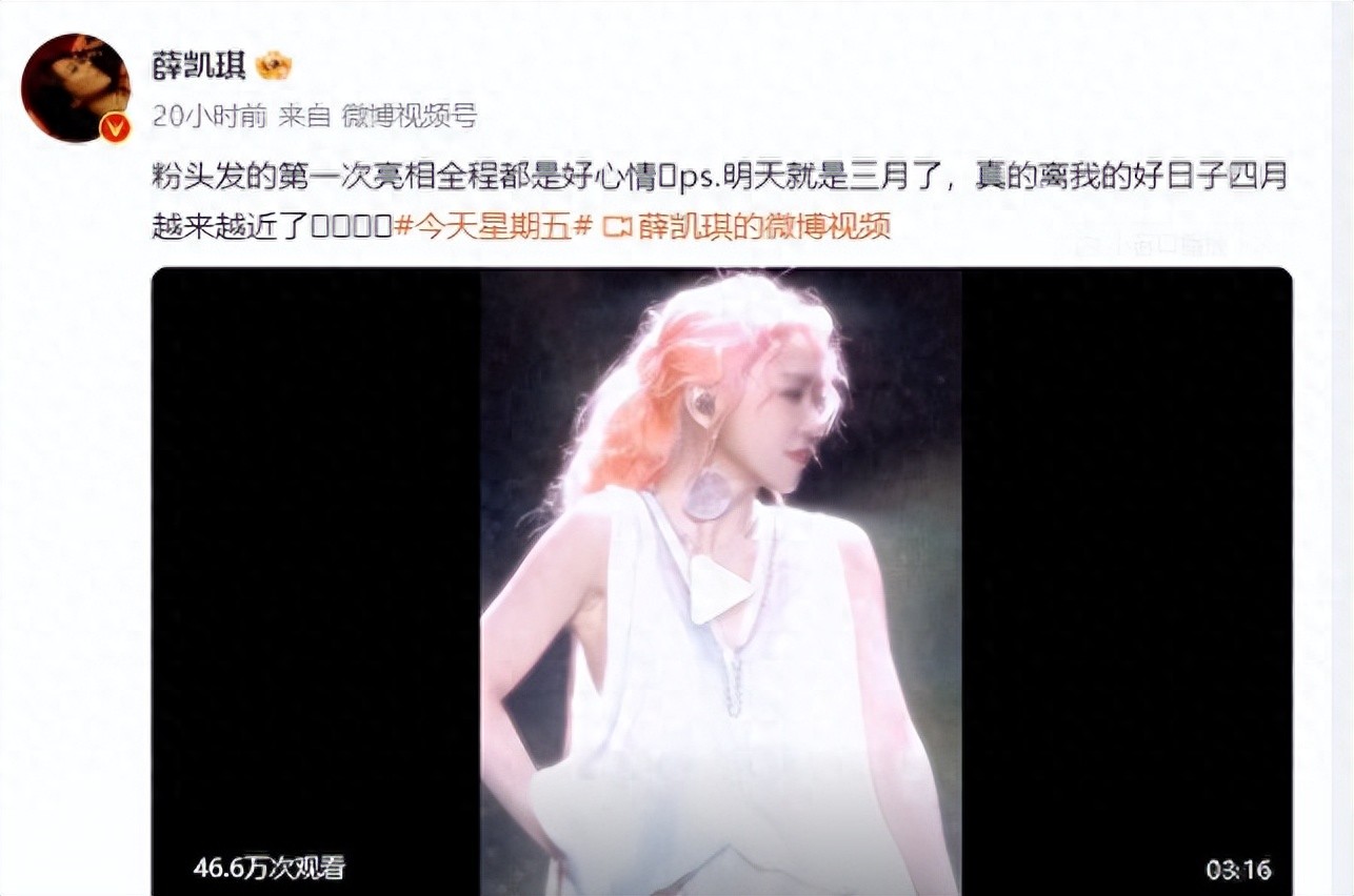 薛凯琪在微博上发文称:“马上就是三月了,真的离我的好日子四月越来越近了。”