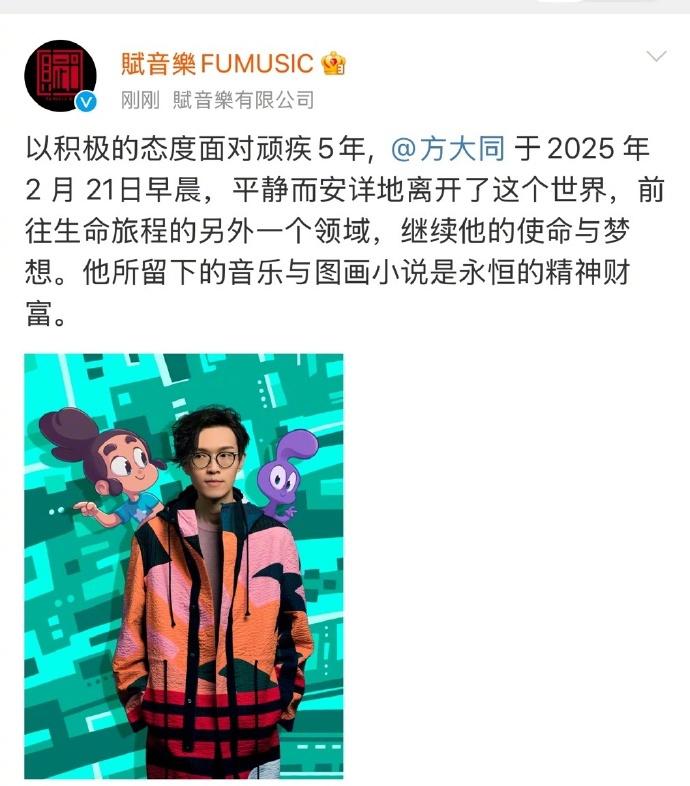 2025年2月21日,音乐界失去了一位才华横溢的艺术家——方大同,年仅41岁。