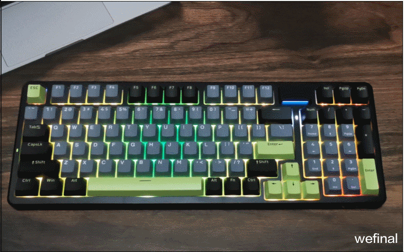 作为电竞装备,怎能没有等效的加持呢?虽然鼠标没有配备灯光,但雷柏V700DIY-98长续航版键盘的灯效却不遑多让,各种炫酷的显示模式应有尽有,氛围感必须拉满。