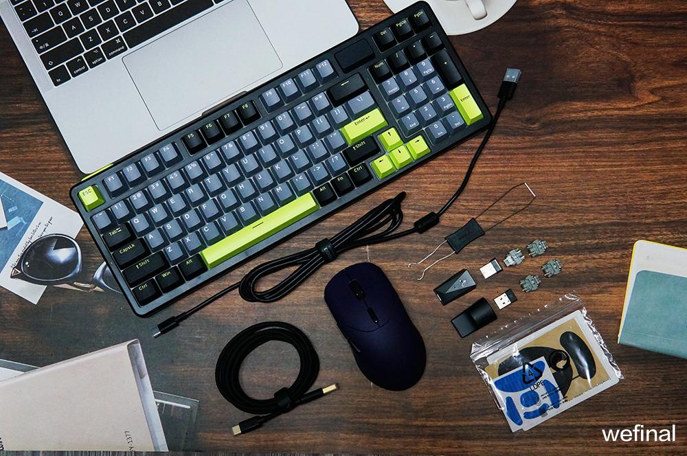 它们的电量提醒功能十分贴心。VT9 MAX鼠标的接收器上带有电量指示灯,同时电脑任务栏也能实时显示电量,V700DIY-98长续航版键盘的时空幻境仓同样配备电量指示灯,让用户可以随时掌握设备剩余电量,避免因电量耗尽而影响使用。