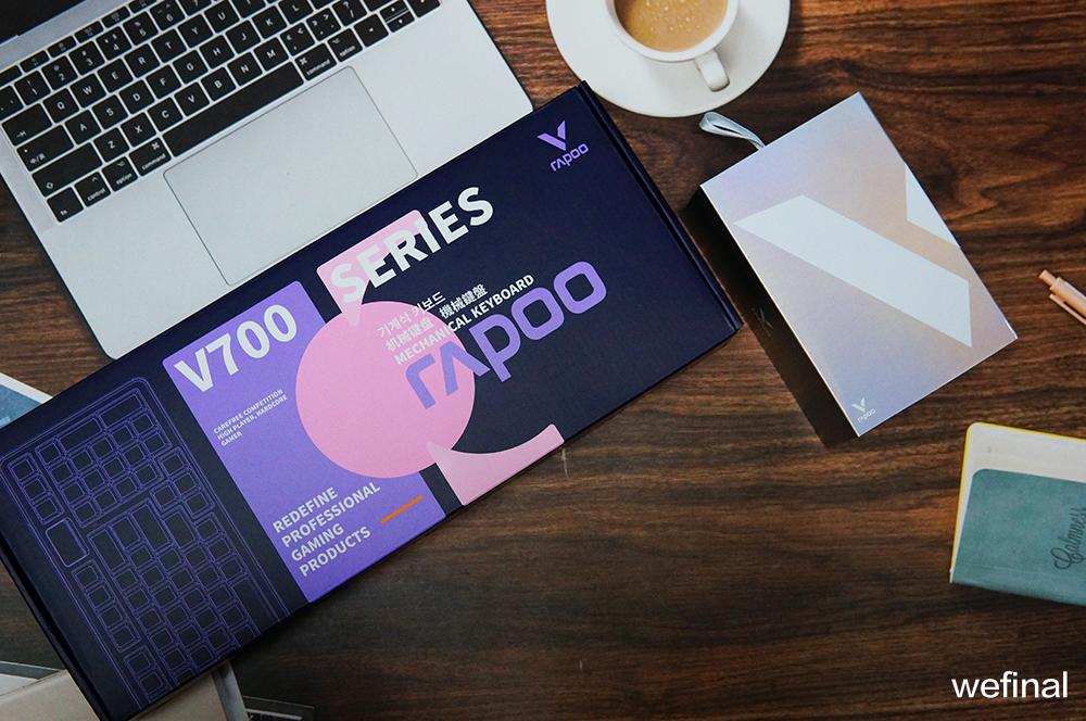 雷柏VT9 MAX鼠标和V700DIY-98长续航版机械键盘的外包装延续了雷柏一贯的简约风格,封面上是醒目的“V”标和型号标识。