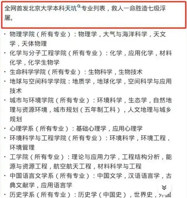 例如,一些父母提及北大的物理、化学和天文等专业,常被称为“天坑专业”,这就是所谓的“天坑专业”。