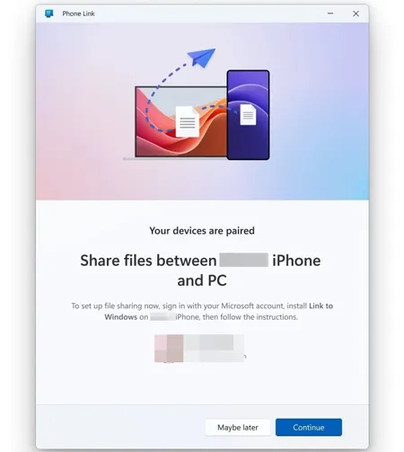 Windows 版的 Phone Link(原名“你的手机”应用)提供一些文件传输功能,主要用于照片传输。此外,它还支持运行 iOS 16 或更高版本的 iOS 设备。