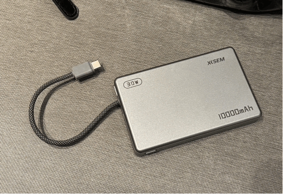 摩-米士30W充电宝厚度仅0.92厘米,非常轻薄,放口袋或小包里几乎无感,出门携带很方便。机身自带隐藏式充电线,线收纳在机身内部,不容易丢,也不用再单独带线,日常外出或出差用起来挺省心。