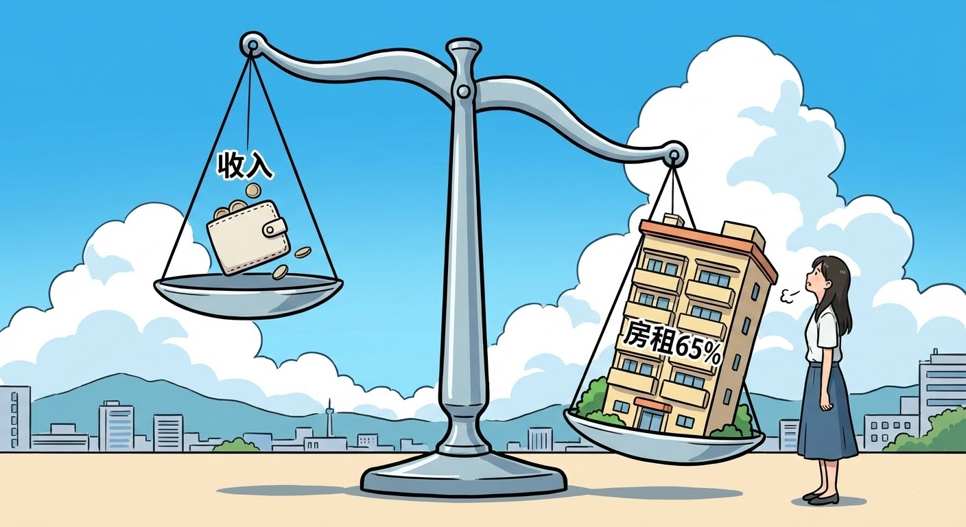 中国一线城市里,年轻人租房子花的钱,占他们收入的65%以上,远远高于警戒线,超出不少呢。