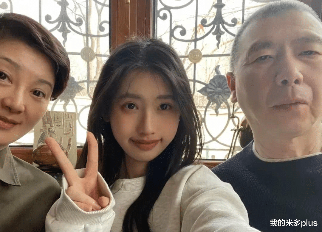 第二张就是去年徐朵回国参加活动,徐帆冯小刚明显面容老了不少,徐朵也开始蜕变成大姑娘的模样,学会了化妆穿搭,眼镜也换成了隐形,坐在爸爸妈妈中间比耶,幸福感爆棚。