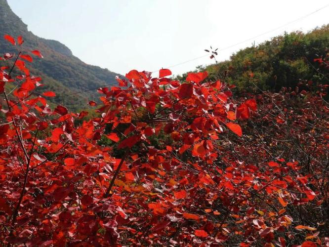 植被覆盖率92%:以油松、侧柏、连翘为主,春季连翘花海延绵10公里(金黄铺满山谷),秋季黄栌红叶层林尽染;